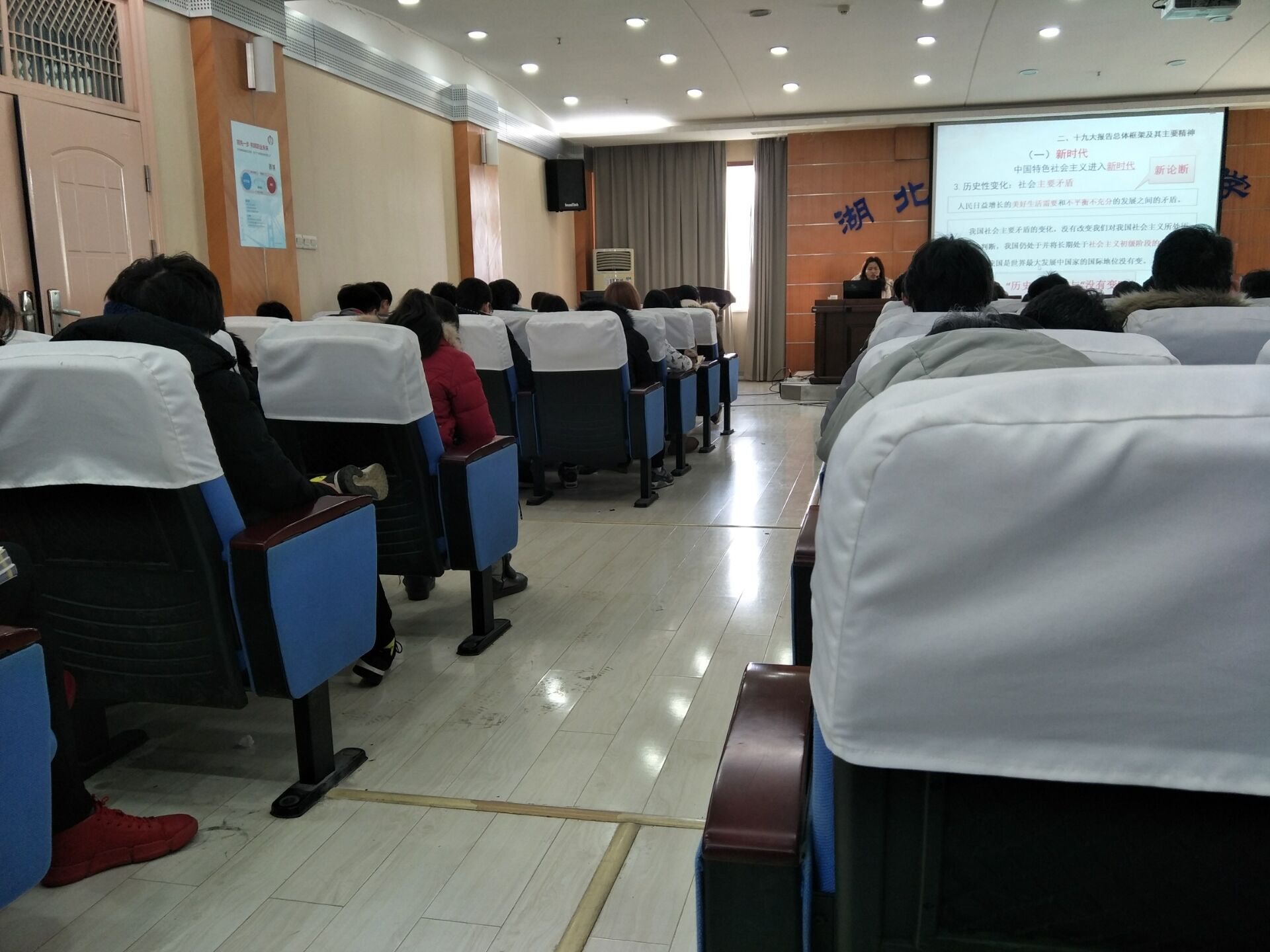 尽管这次讲座的时间不长,但我们却受益匪浅,深刻认识到了十九大召开的重大意义,认识到了自身的使命。我们是时代的青年,要始终坚持党的领导,为国家,为社会贡献自己的力量!