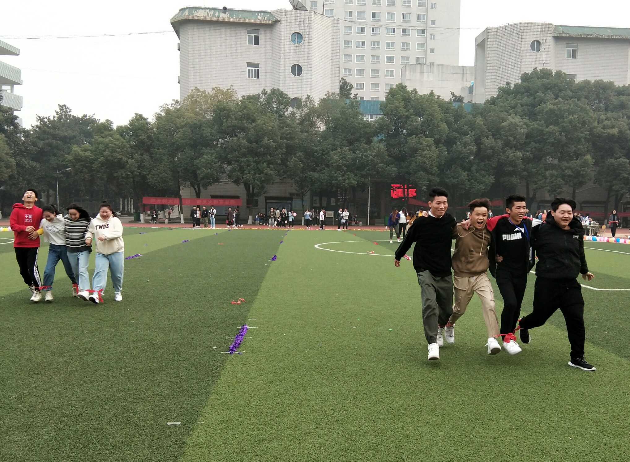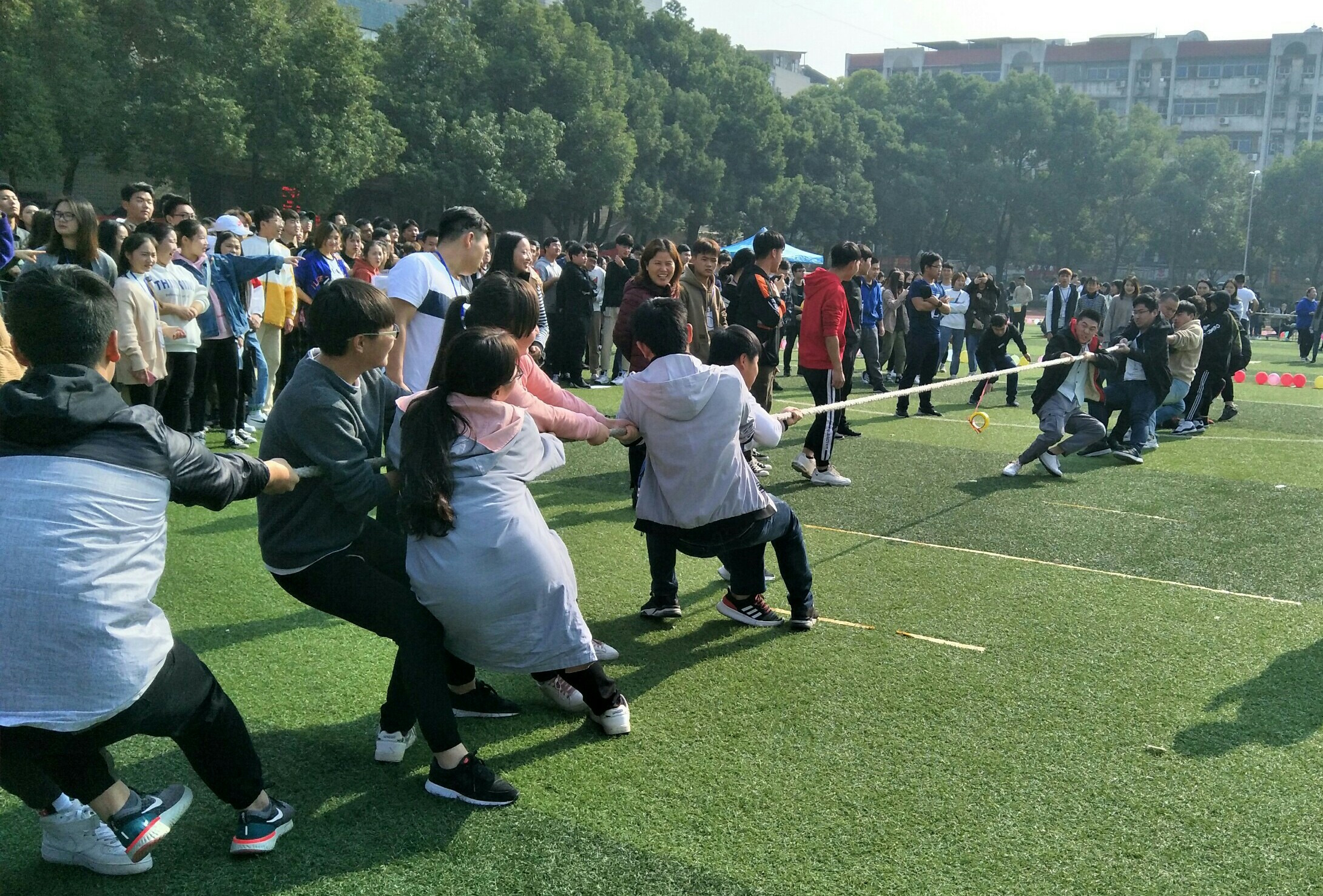 随着“拔河大比拼”的激烈展开,本次比赛也拉开了序幕。此次比赛采用趣味运动会的形式向我们展示信息系学子不一样的风采。同时又设置了“四人五足”,“心心相印”,“拔河大比拼”等三个重要环节,由大一,大二所有寝室成员参与其中。随着比赛项目的一步步开展,同学们的欢呼声,加油声也是越来越激烈,将这次比赛推向了高潮,之后欢声笑语更是不断,但还是由于时间原因,这次的比赛仍在心心相印的加油声中结束了。