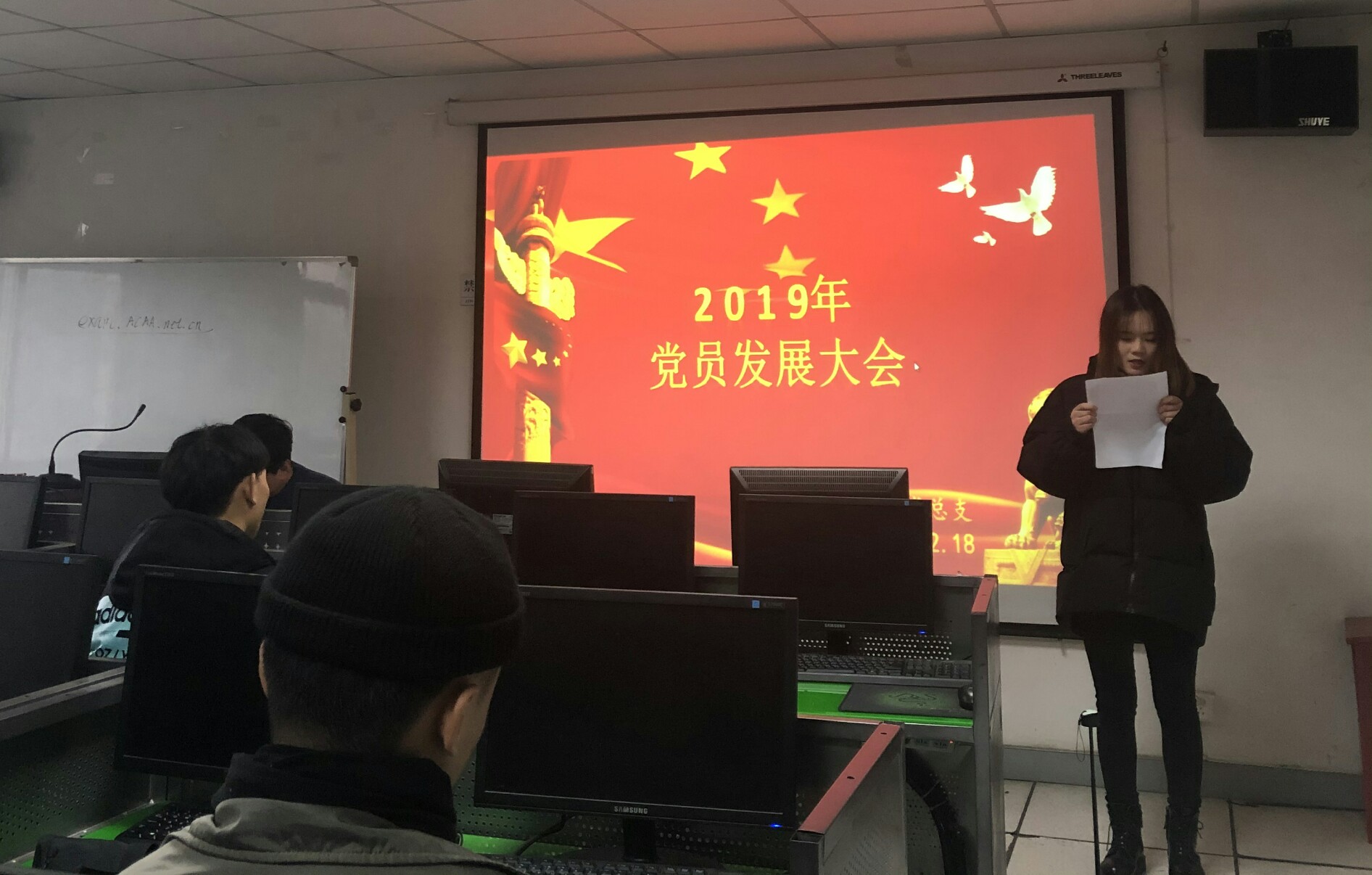 2019年12月18日,信息工程系党总支在东区3楼电一机房组织召开了支部2019年12月党员发展大会。党总支副书记丁燕鸿同志主持会议,教师支部和学生支部党员参会。