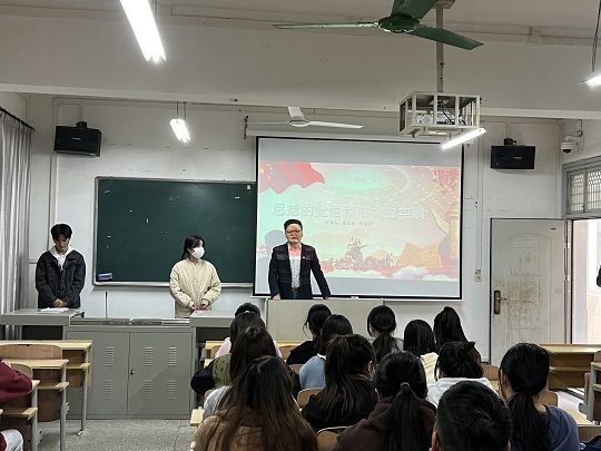活动开展当天,各入党积极分子提前到达自己负责所在的教室准备设备的开启和预演讲解的材料。2:00后,老师们率先到达活动场地,大一各班学生也陆续到场,以班级为团体进行党史巡游,本次红色微旅由系部书记杜毅老师发表活动开场词,并谈到信仰的重要性,并激励观旅的大一同学要边学边知。开场结束后,红色微旅活动正式开始,本次微旅的主要由大二入党积极分子余全金,柳尧,何卫东等多人带来讲解,每个教室都运用多元化的讲解方式如:党史小竞答,红歌演唱,观看视频等等方式带领大一的同学更好的感悟党史,理解党史。