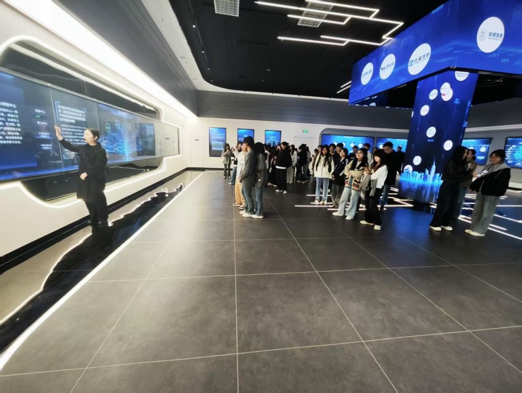 15:15,队伍转至基地的智算中心。这里庞大的服务器集群和先进的冷却系统直观地展示了支撑现代数字社会的强大算力。讲解员阐释了算力作为“新生产力”在网络安全分析、人工智能模型训练中的关键作用,将抽象的“信息化”与“现代化”概念转化为可感知的实体,使学生们理解了网络安全是数字时代发展的“底座”和“前提”。带队教师们纷纷感慨道:“这样的参观让学生们从课本走向实践,真正理解了网络安全的重要性。”